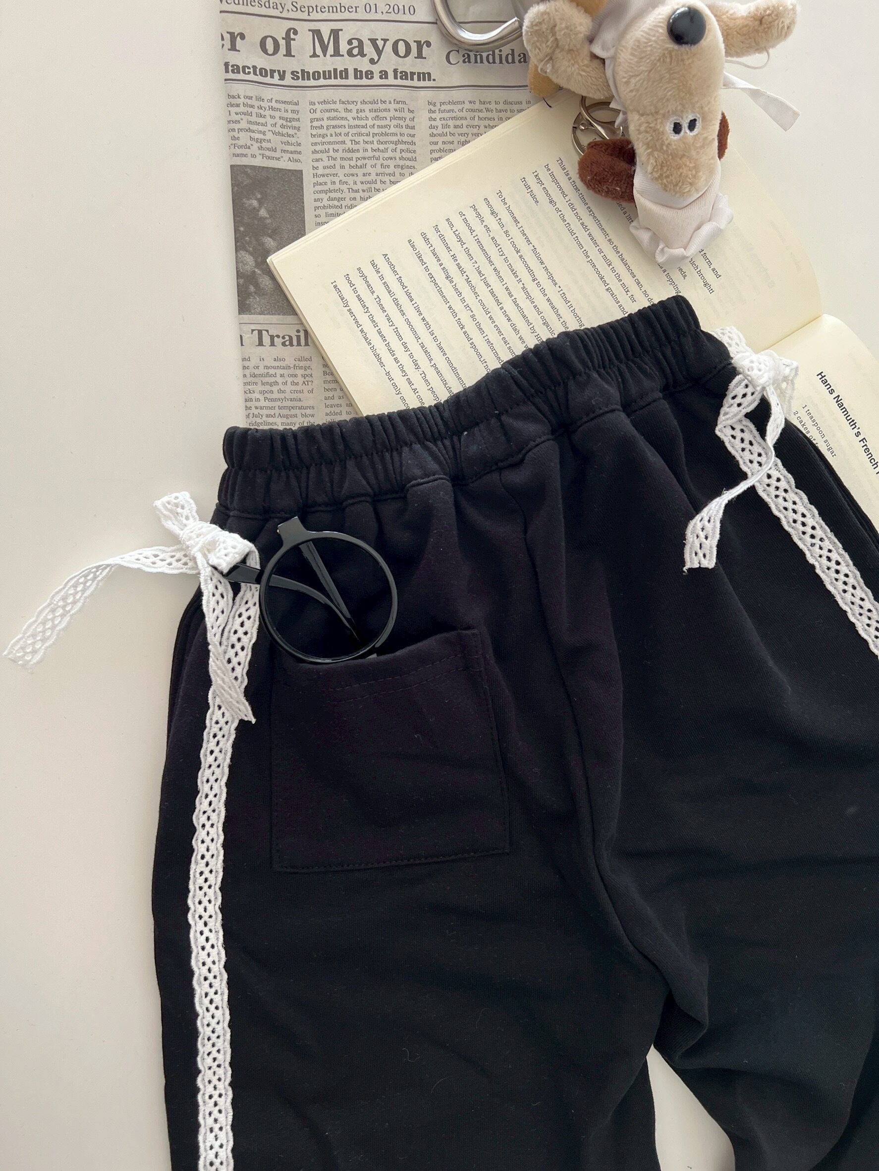 lace ribbon sweat pants