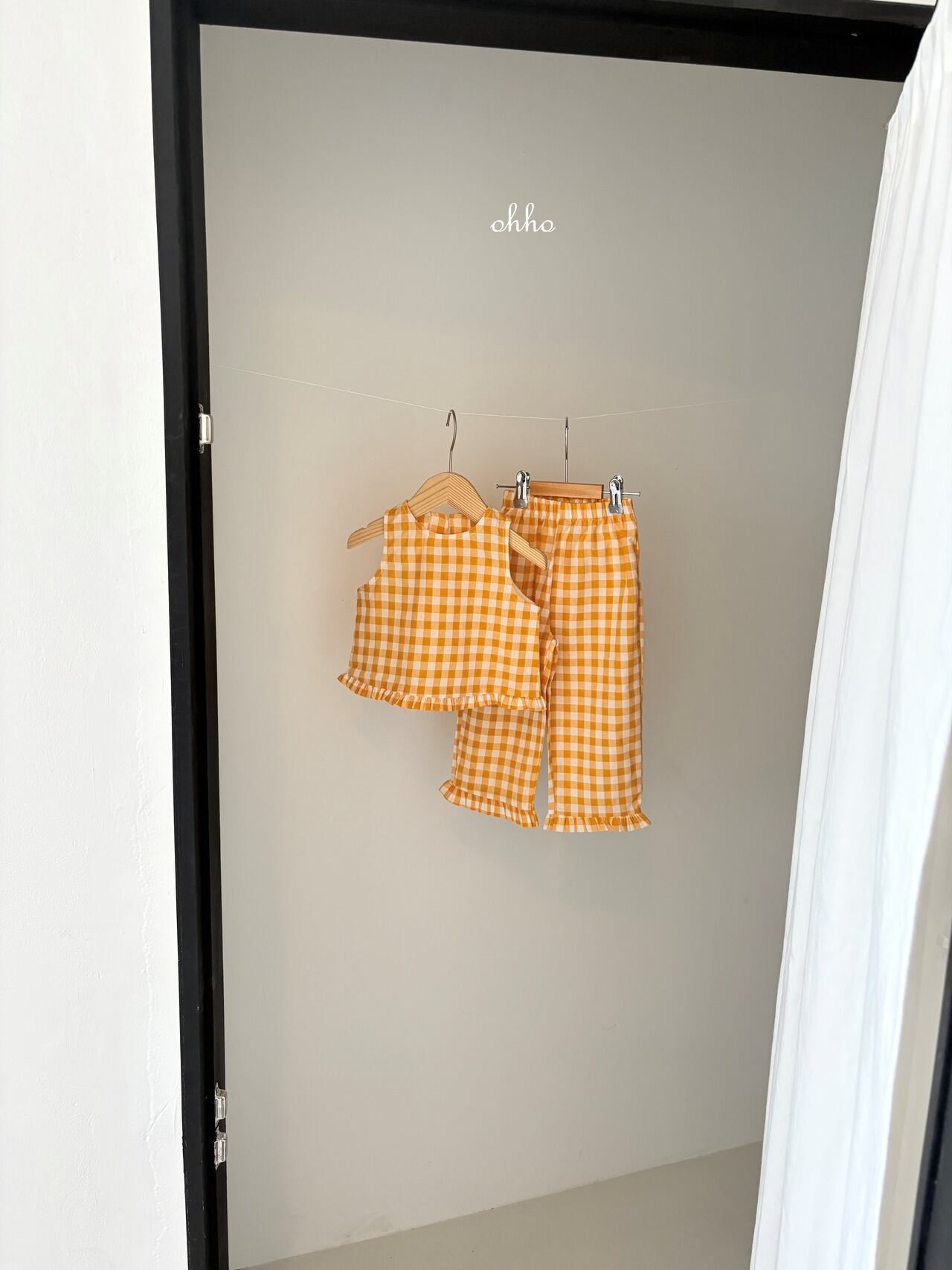 【ohho】Gingham Ruffle Pants