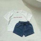 商 品 : solid denim pants